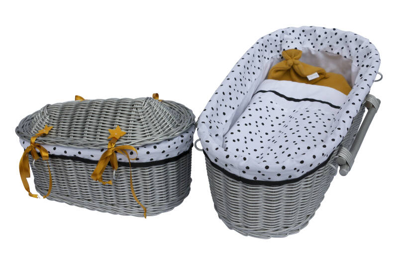 De rieten mandjes zijn naast de naturel uitvoering, ook in bijzonder kleurrijke varianten beschikbaar. Alle mandjes zijn voorzien van een binnenrand, matras en deken. Tevens wordt bij elk mandje een bijpassend poppetje geleverd. Deze is gemaakt van het materiaal waar het mandje mee is bekleed.