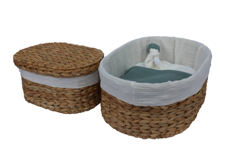 De mandjes van Waterhyacint zijn leverbaar in 3 maten: 30 cm (tot ong. 24 weken zwangerschap), 45 cm (tot ong. 32 weken zwangerschap) en 65 cm (tot en met voldragen baby's).
